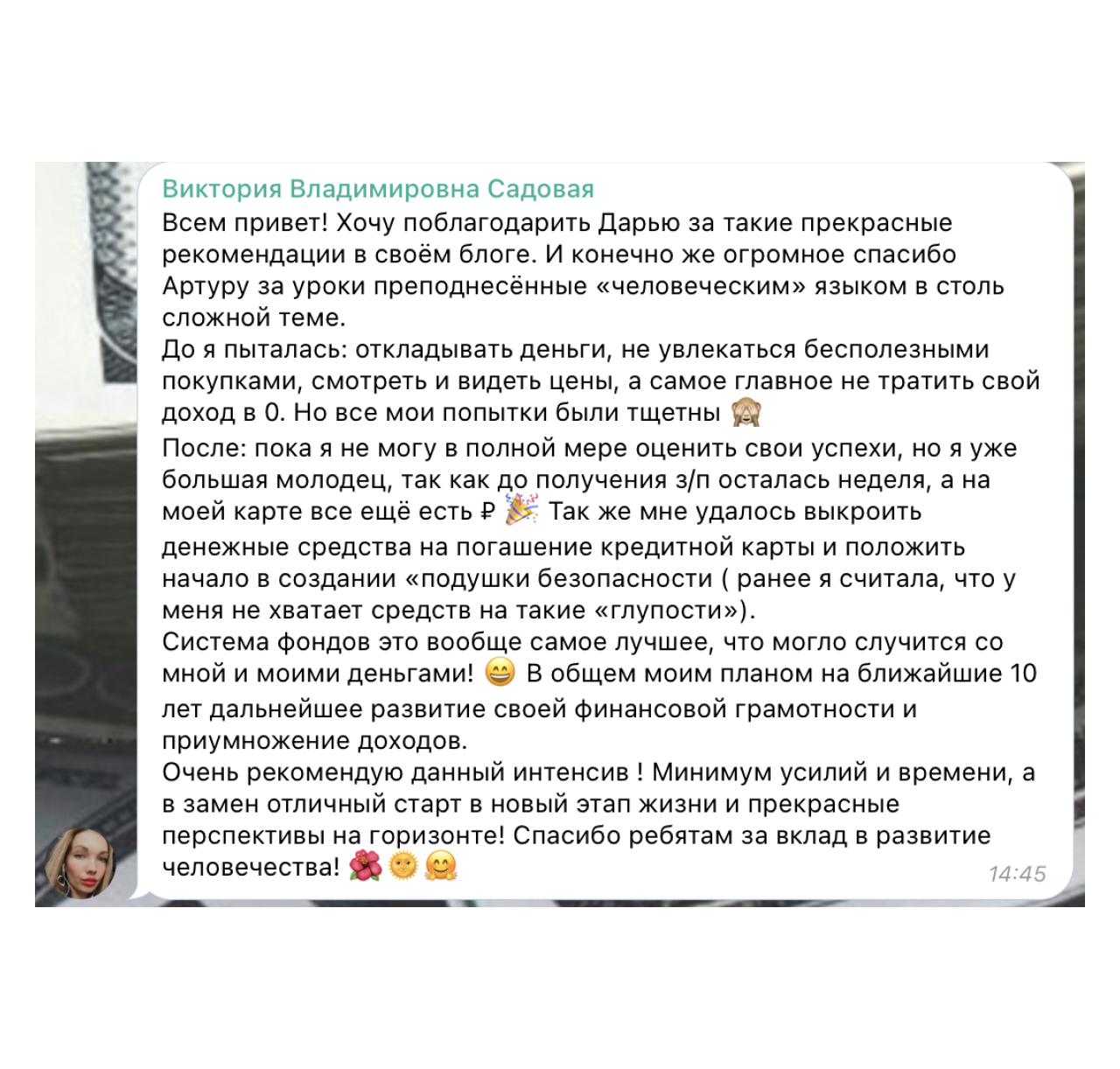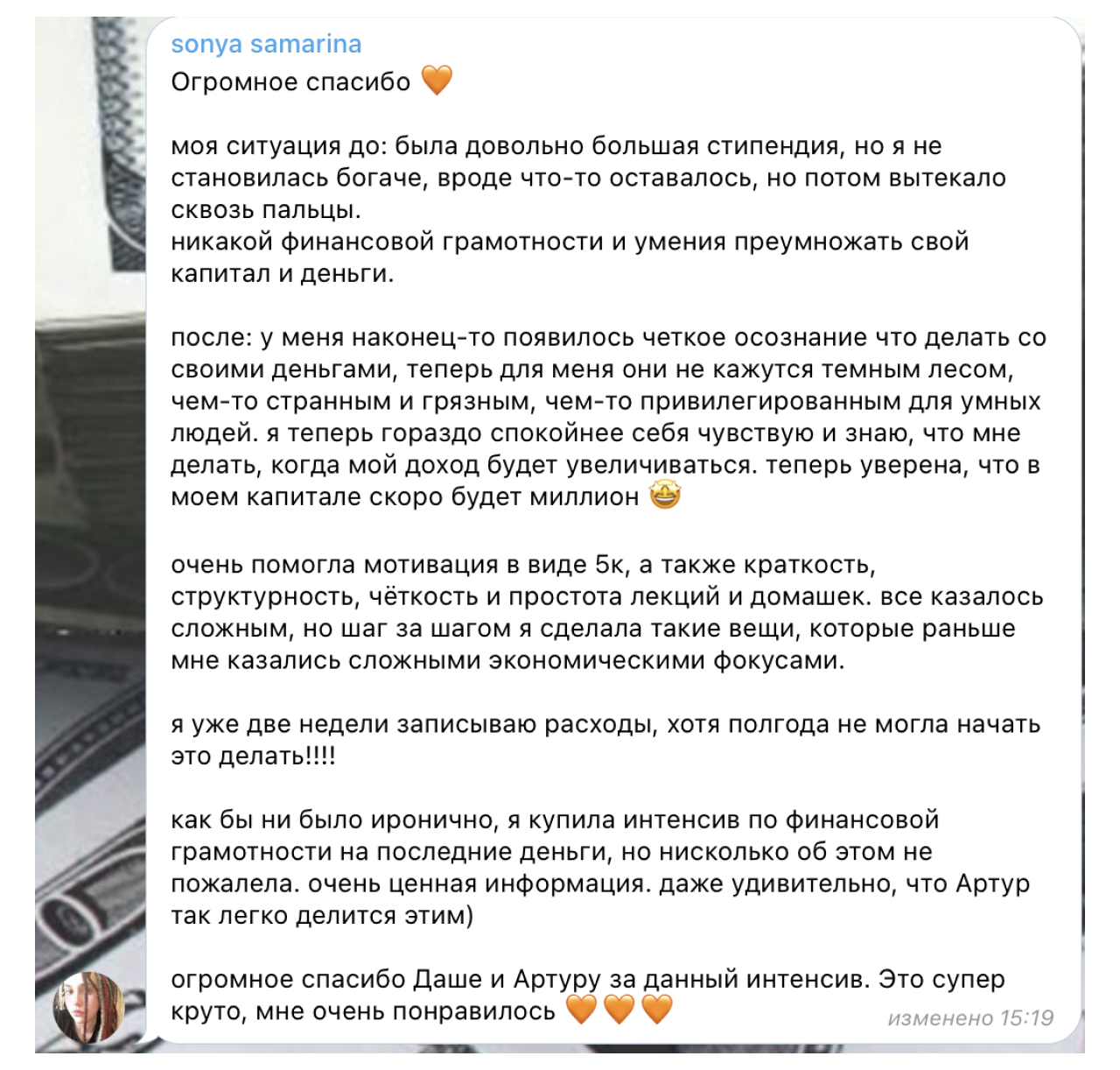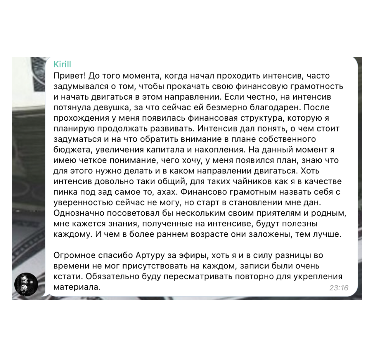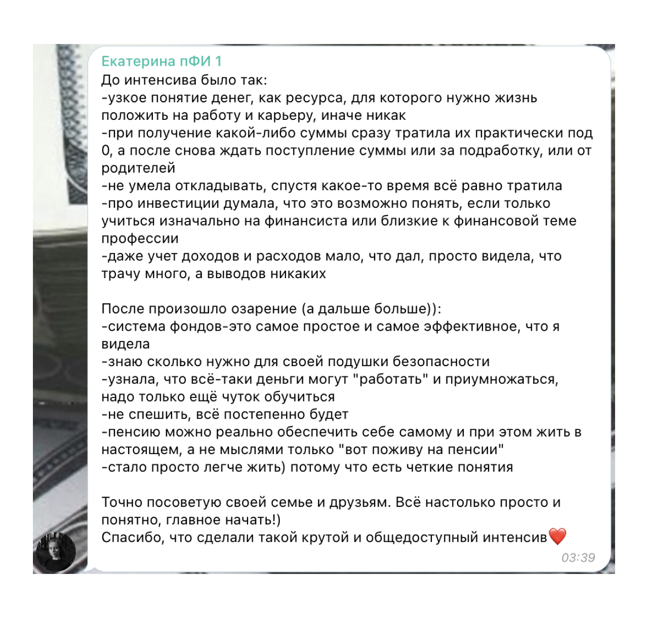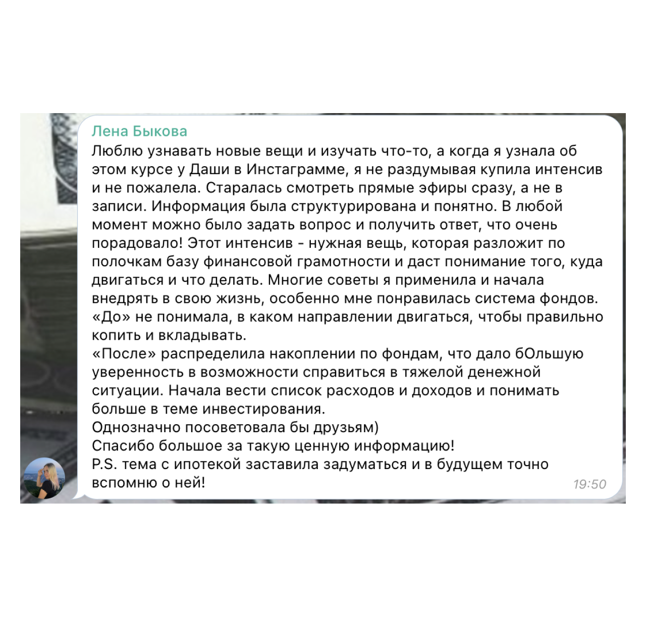 Что касается самого интенсива и оформления - всё супер. Легко, удобно, быстро, понятно. Благодаря этому интенсиву мое будущее в безопасности). Спасибо огромное! За такие небольшие деньги это очень того стоит, знания на всю жизнь. Уже рассказала и посоветовала всем близким.